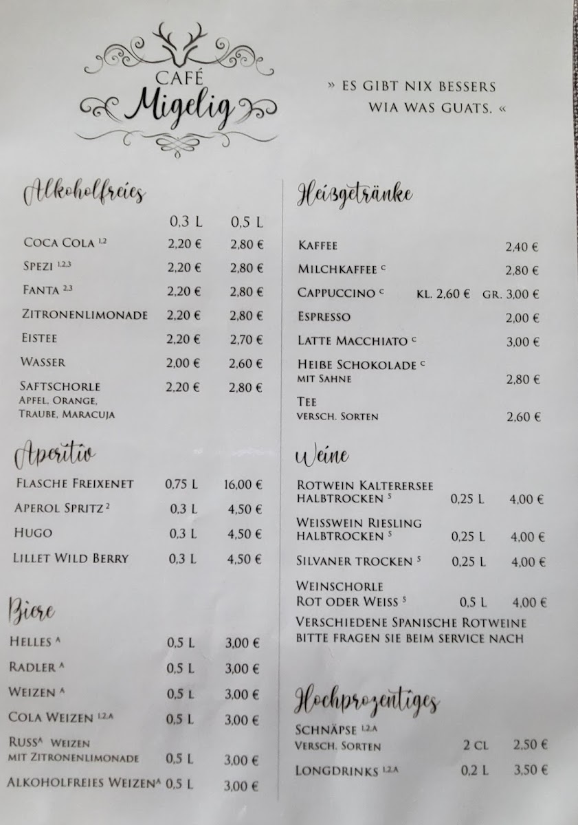 Café Migelig Menu